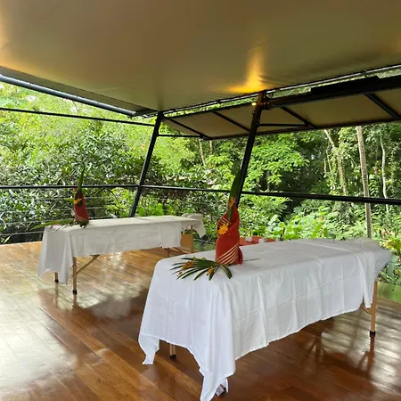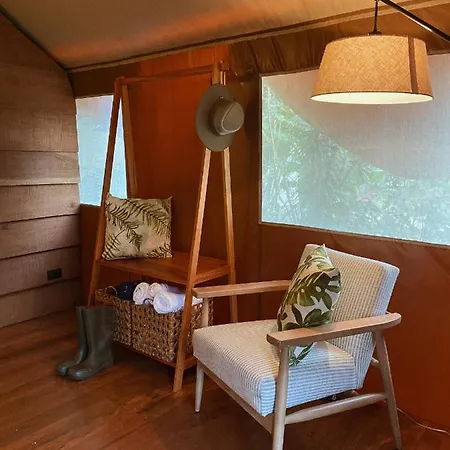 A Hotel Arenal Glamping 10 perc autóútra található a Kalambu Hot Springs aquapark területétől, ahol közös társalgót, piknikezőhelyet és barbequet kínál vendégeinek. A villa gyerekmenüt, játszószobát és társasjátékokat foglal magába a gyerekkel érkező vendégek igényeinek kielégítésére.