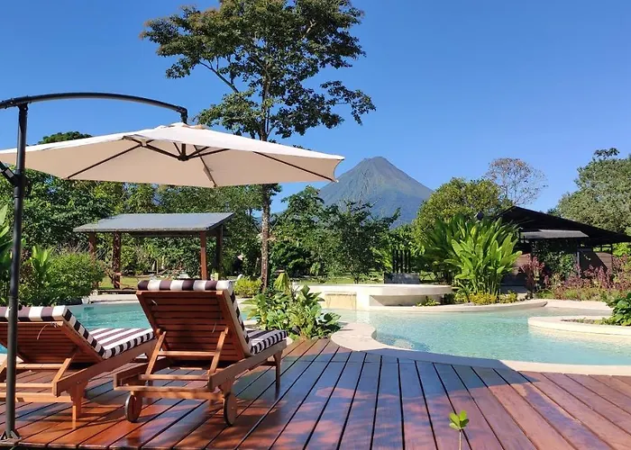 10-комнатная вилла Hotel Arenal Glamping ожидает гостей в 15 минутах езды от аэропорта Фортуна. Вы можете расслабиться в открытом бассейне или взять напрокат велосипеды для того, чтобы исследовать красоту Ла Фортуны.